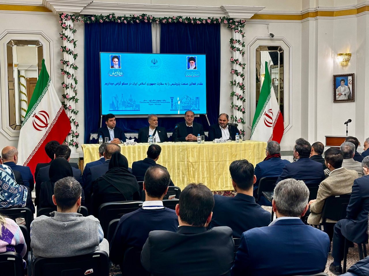 نشست با تجار و فعالان اقتصادی ایران که در نمایشگاه پتروشیمی #171روپلاستیکا#187 مسکو شرکت کردند با کاظم جلالی، سفیر جمهوری اسلامی ایران در روسیه شامگاه روز چهارشنبه ۸ بهمن در اقامتگاه سفیر کشورمان در مسکو برگزار شد.