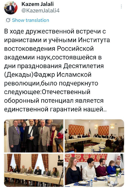رشته توییت سفیر ج.ا.ایران در روسیه پس از نشست با ایران‌شناسان روسی